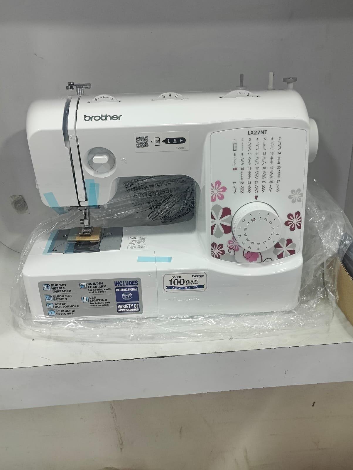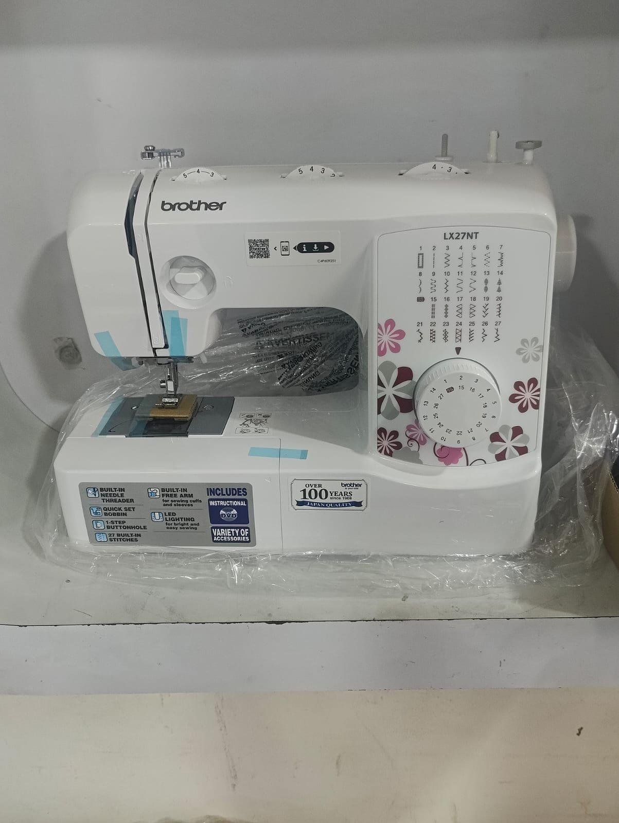 The Brother LX27NT is a versatile mechanical home sewing machine, ideal for beginners, with 27 built-in stitches, including a one-step buttonhole. It features a built-in needle threader, quick-set horizontal bobbin, LED sewing light, and manual stitch length and width controls. The machine has a durable metal frame, a free arm for working on different projects, and is operated with a foot controller for speed control.