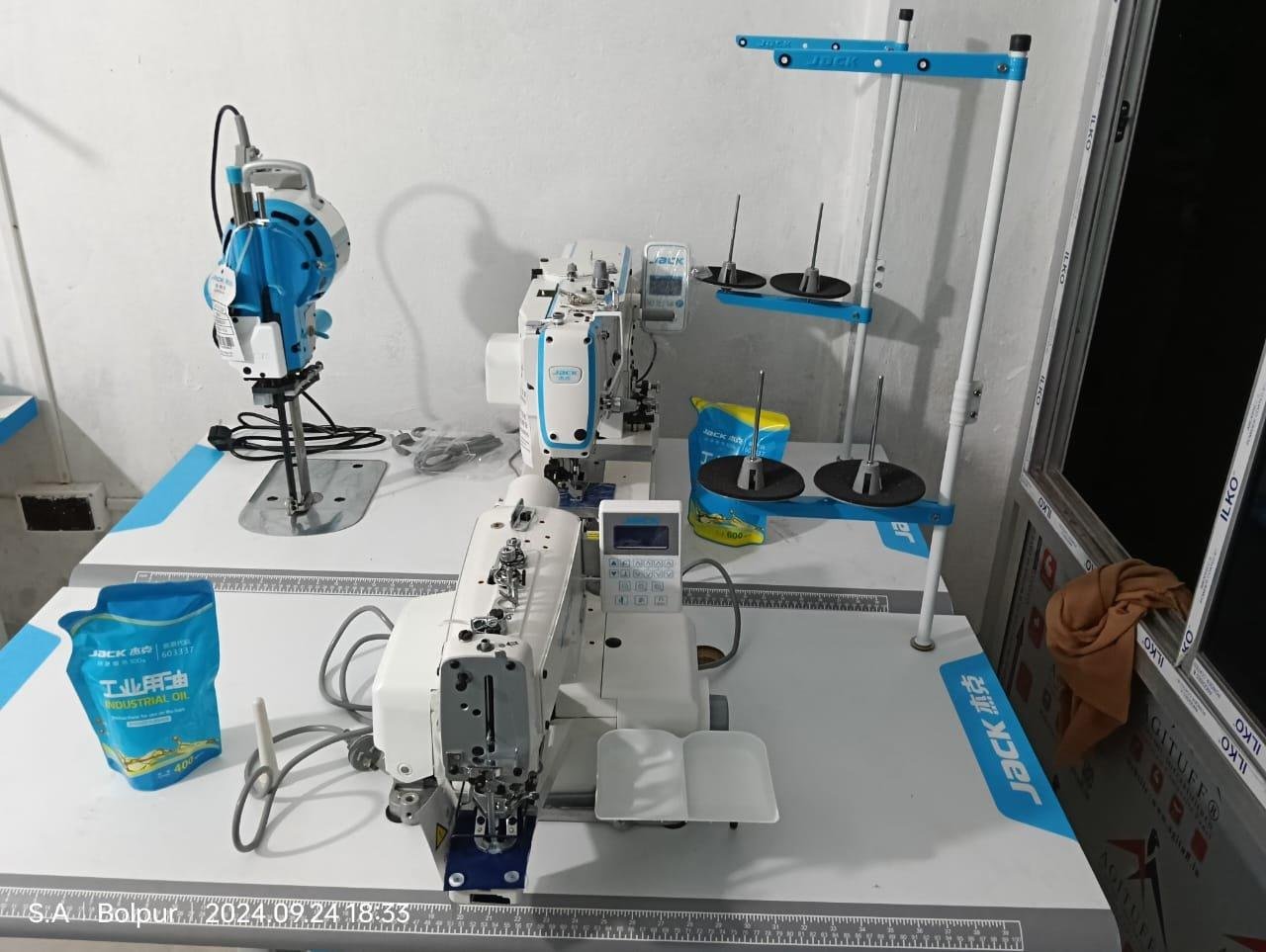 The Jack 1377E (or JK-T1377E) is an electronic, computerized, industrial button-attaching sewing machine used in garment manufacturing for efficiently and precisely sewing buttons onto clothing. Key features include a direct drive motor, user-friendly LCD panel for parameter control, an automatic presser foot lifter, and an electronic thread trimmer for high precision and stable operation. It is designed for light to medium-weight fabrics and can attach buttons in parallel or cross-stitch patterns.