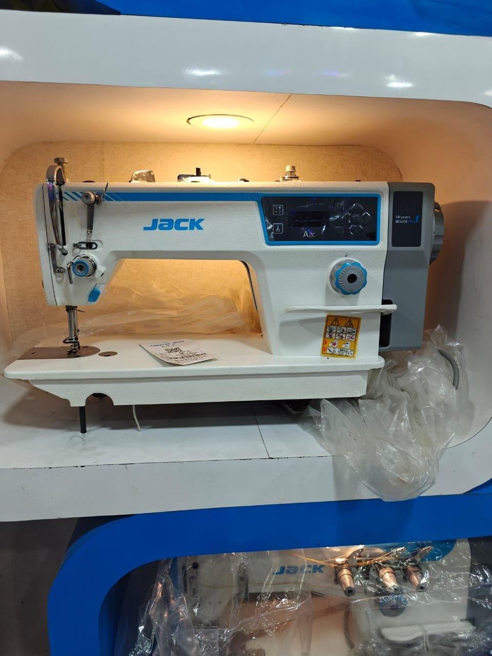 The JACK JK-A2C-C is an industrial single-needle, lockstitch flatbed sewing machine designed for high performance, efficiency, and energy savings. It is specifically configured for sewing light to medium materials.