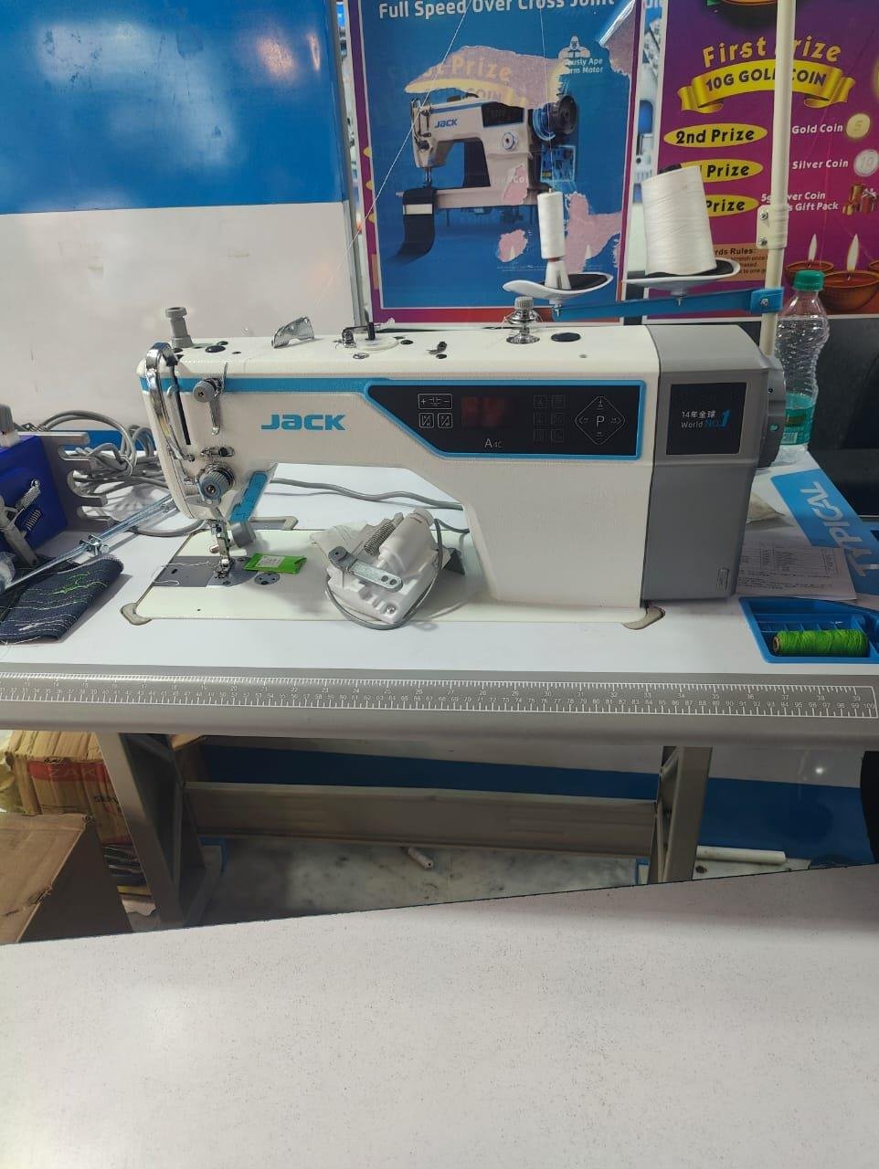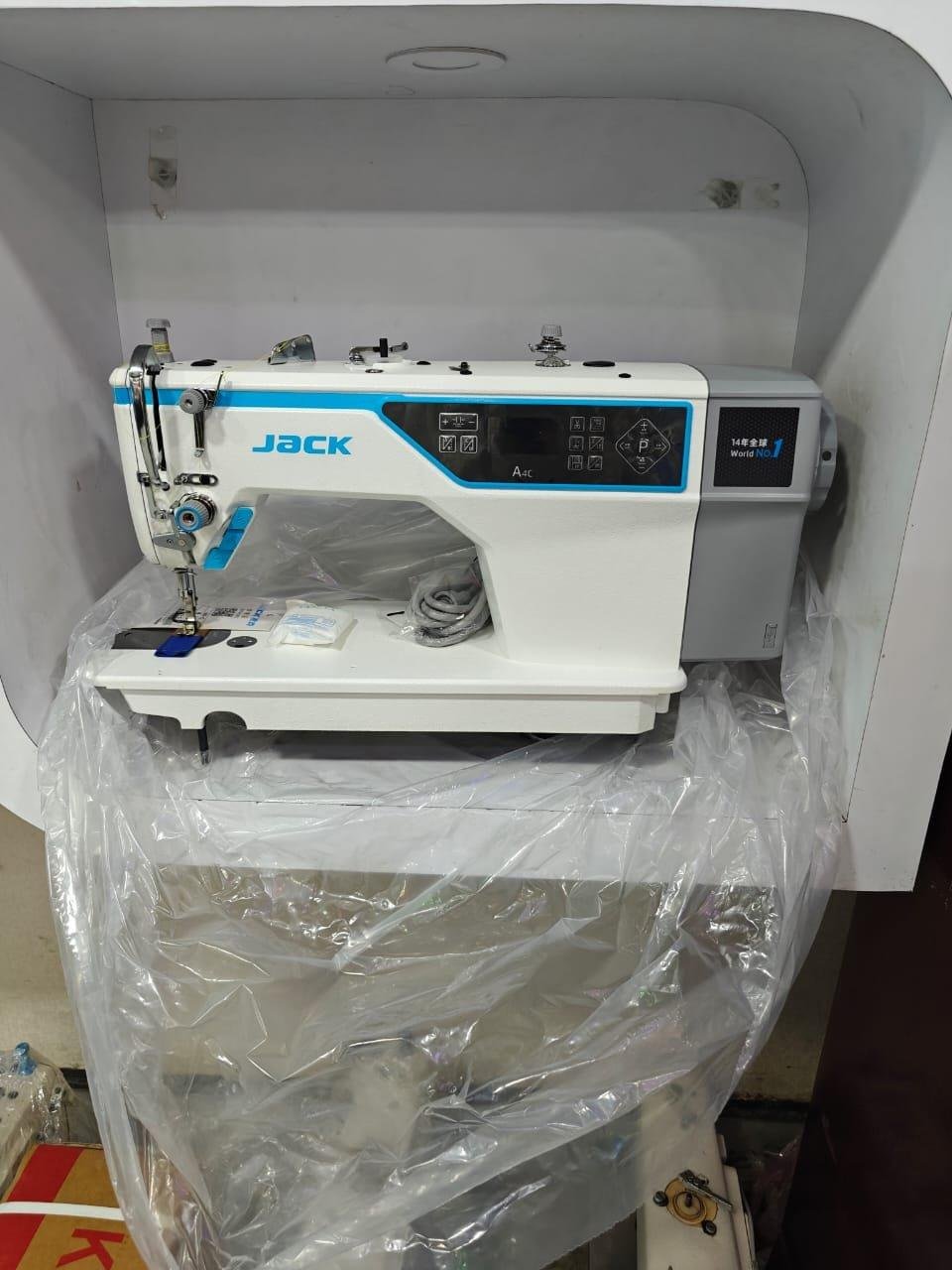 The JACK JK-A4C-C is a computerized single-needle lockstitch machine that uses an "Octopus" AI chip for high-speed, high-precision sewing. Key features include automatic thread trimming, foot lift, and back-tacking, a digital stitch length adjustment, and a direct-drive motor for quiet and energy-efficient operation. Its AI system optimizes feeding to reduce thread breakage, making it suitable for various materials.
