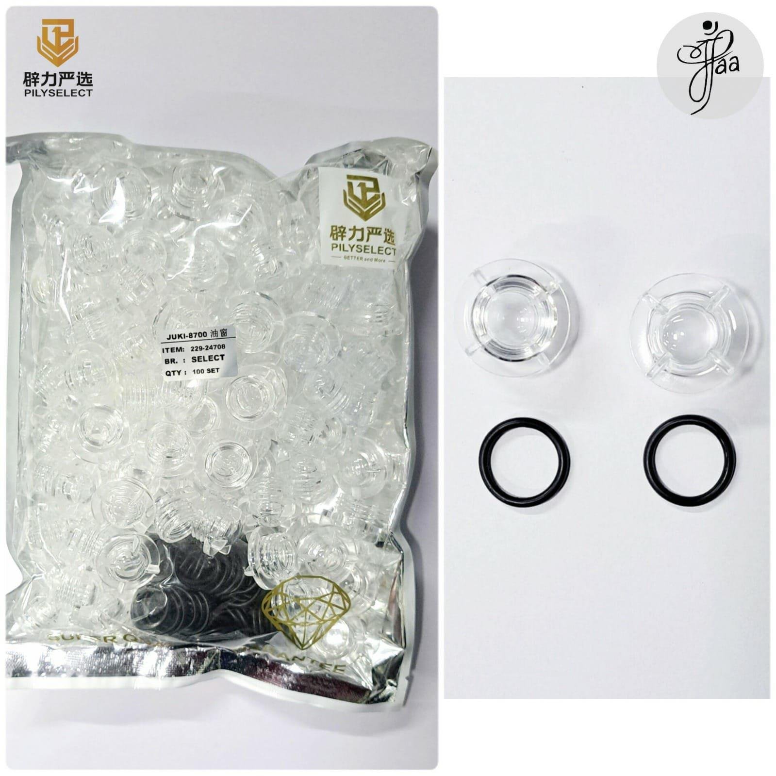 An oil window on a sewing machine, also known as a sight glass, is a small, transparent opening that allows the operator to monitor the oil level inside the machine's reservoir. This feature is typically found on industrial sewing machines that have a self-lubricating system with an oil pan